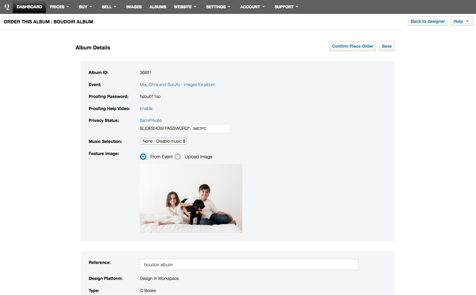 Step one: Open the album in Workspace and you will be taken to the design.