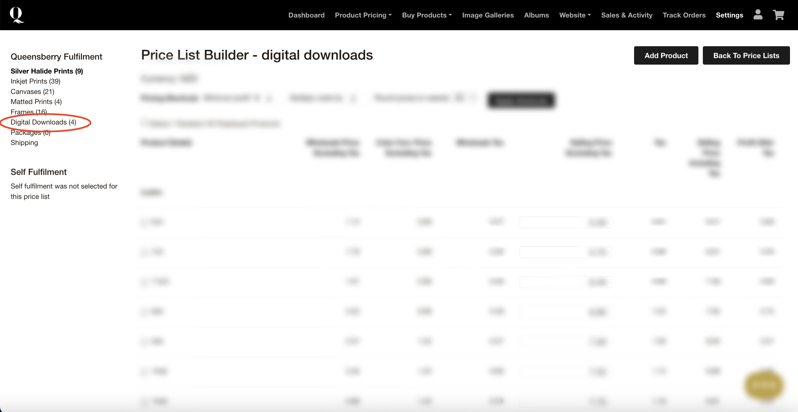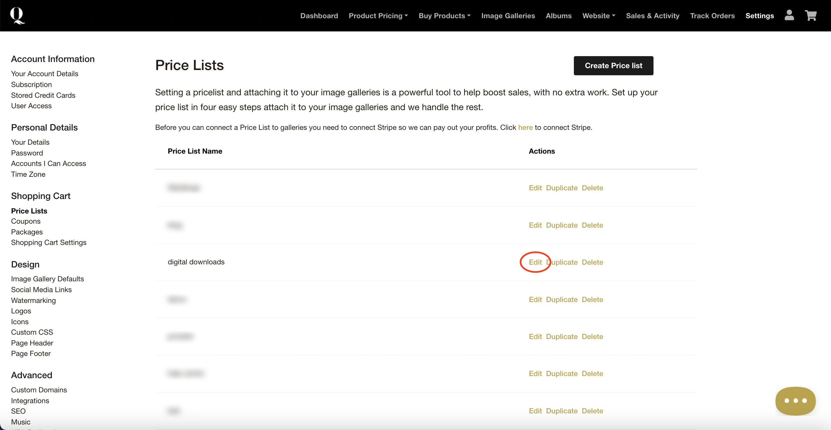 Step 3: Click ‘edit’ next to the price list you would like to add digital downloads to
