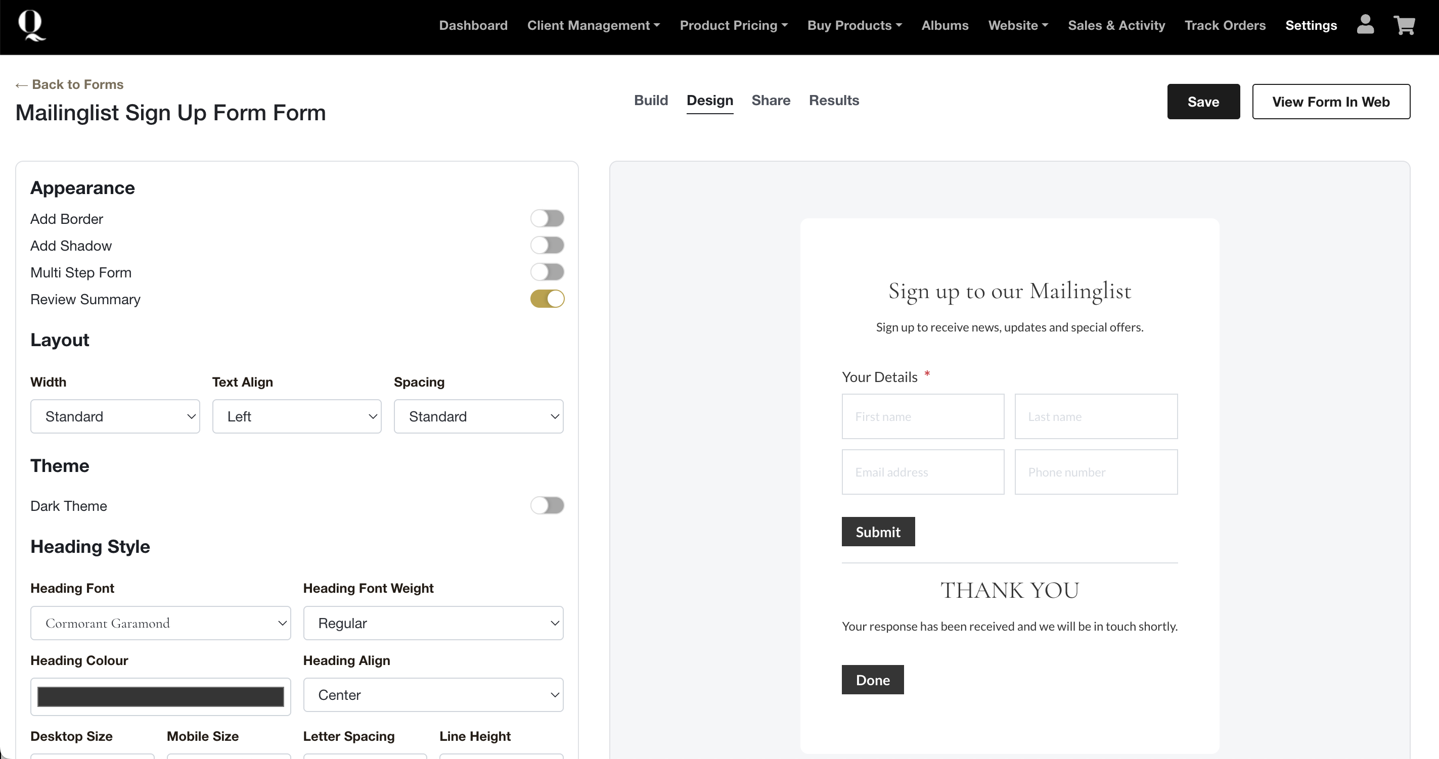 - Match your form design to your brand for a consistent client experience