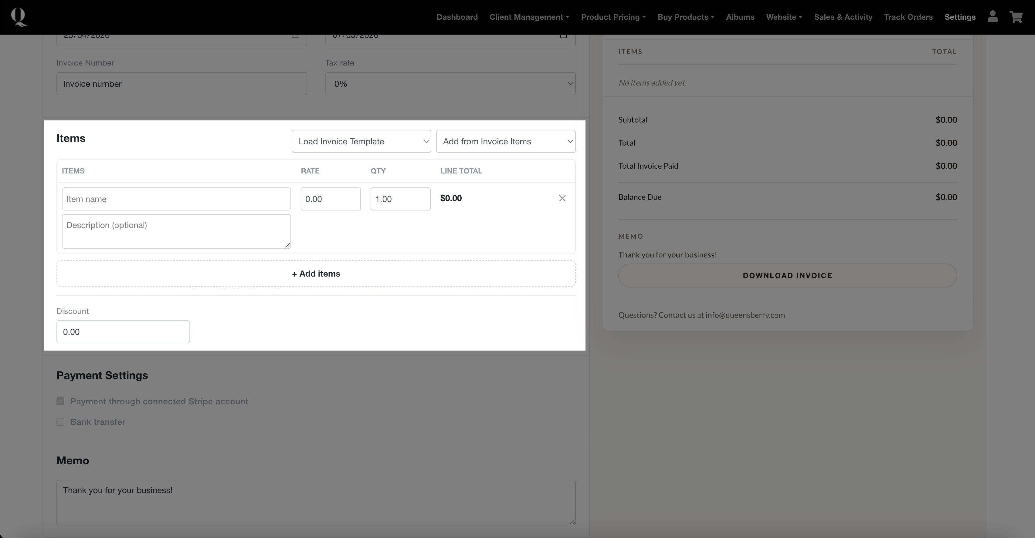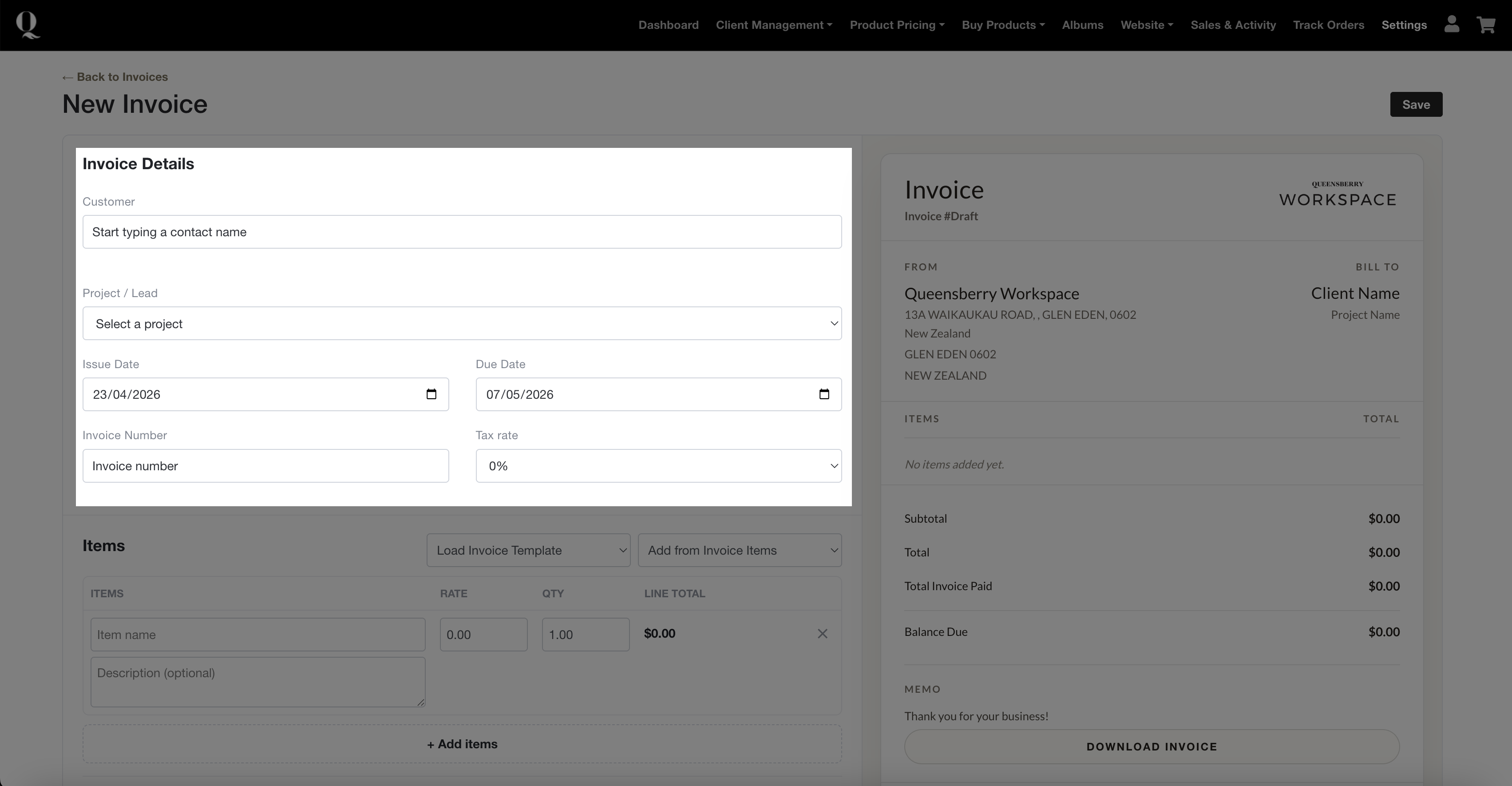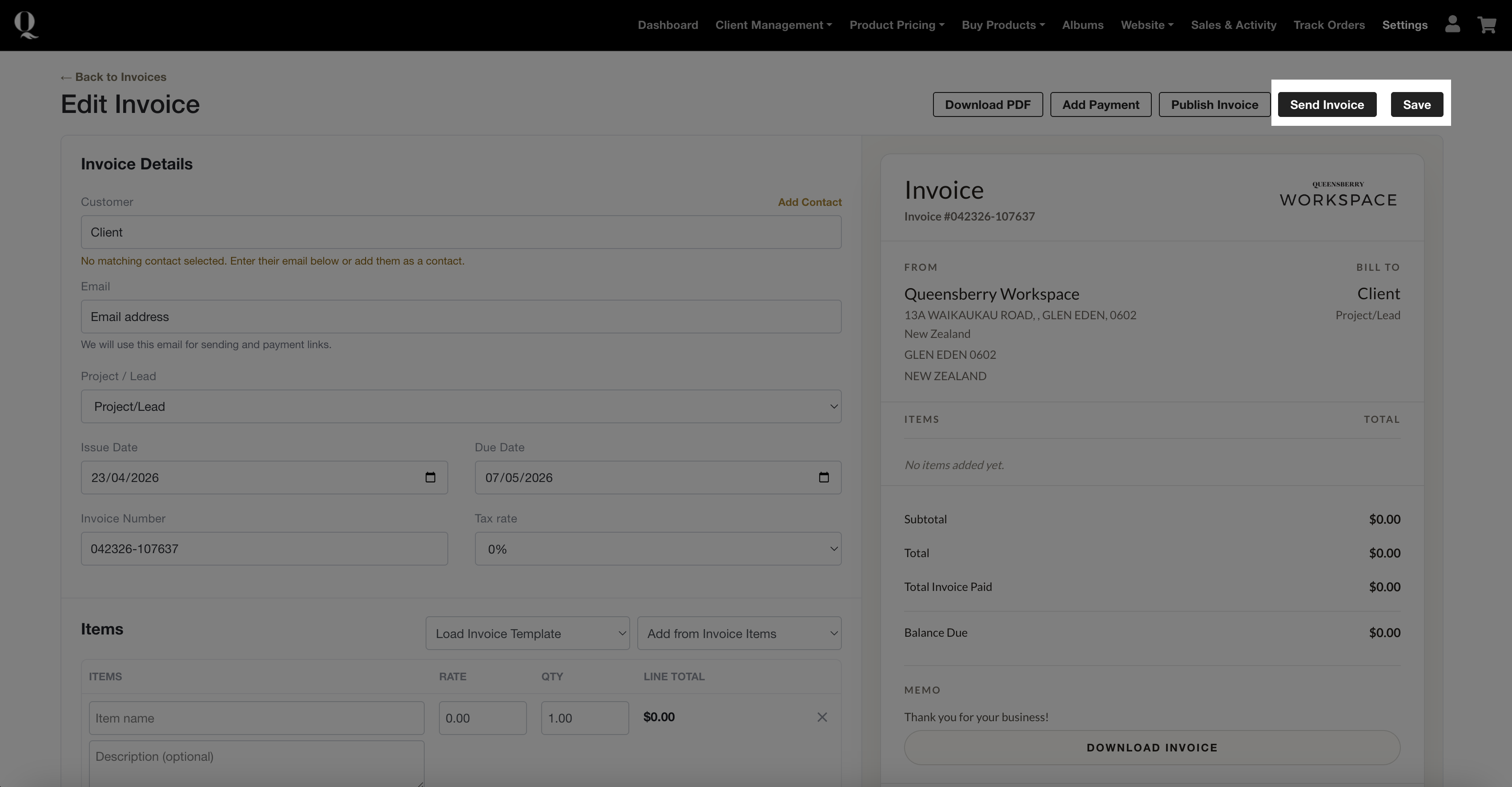 Invoices in Workspace allow you to bill your clients professionally and efficiently. You can create reusable invoice templates or send custom invoices for one-off projects.