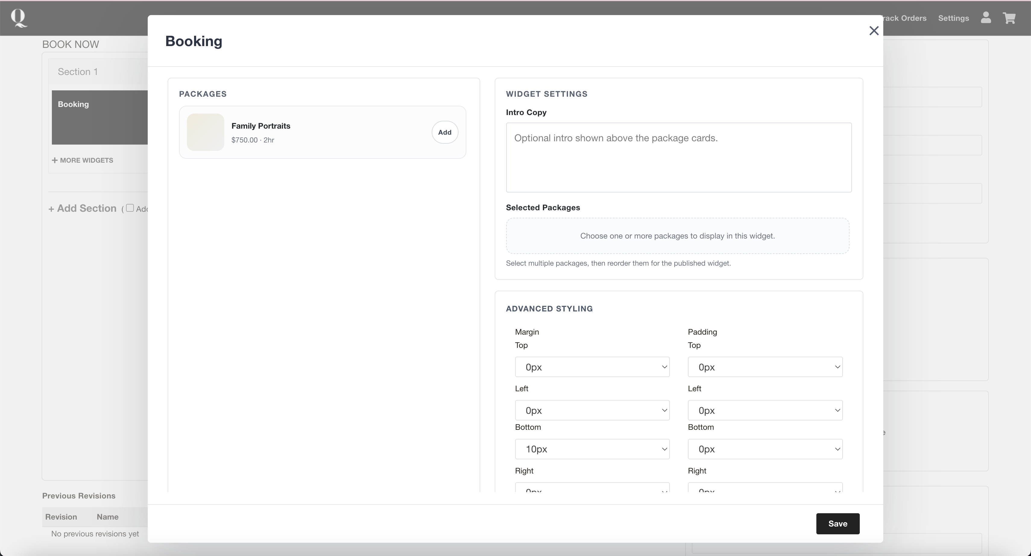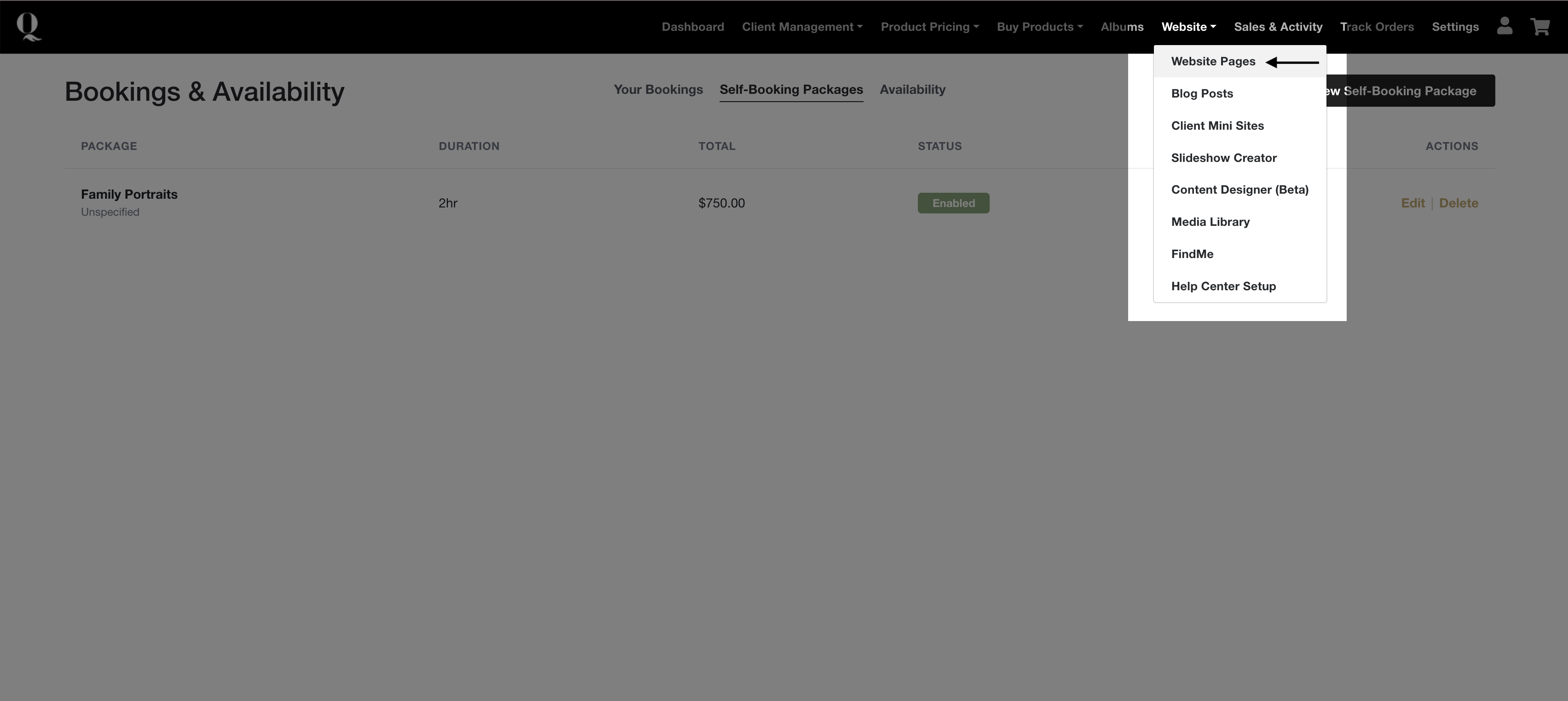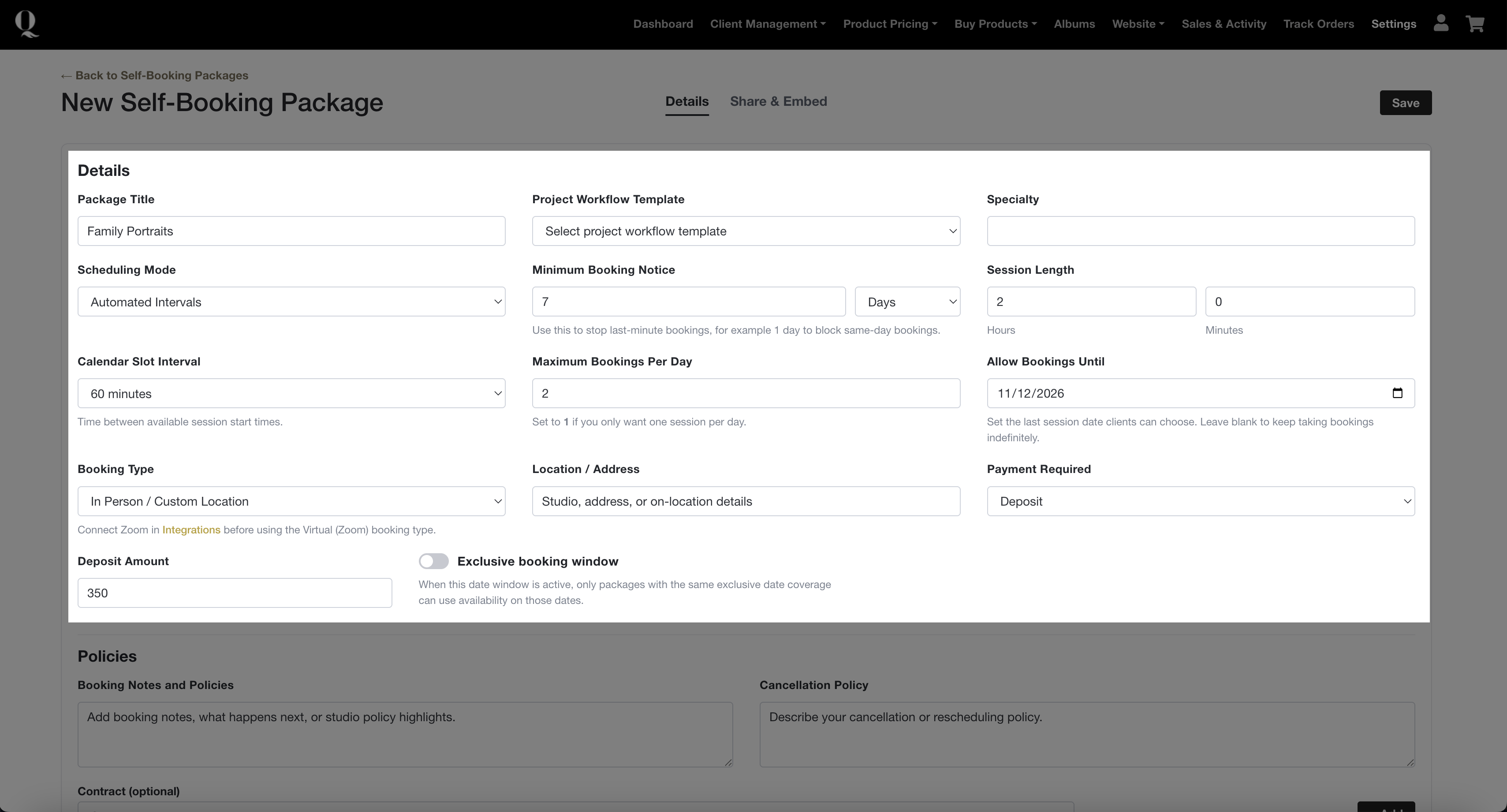 Self-booking packages allow your clients to book sessions directly through your website based on your availability and package options.